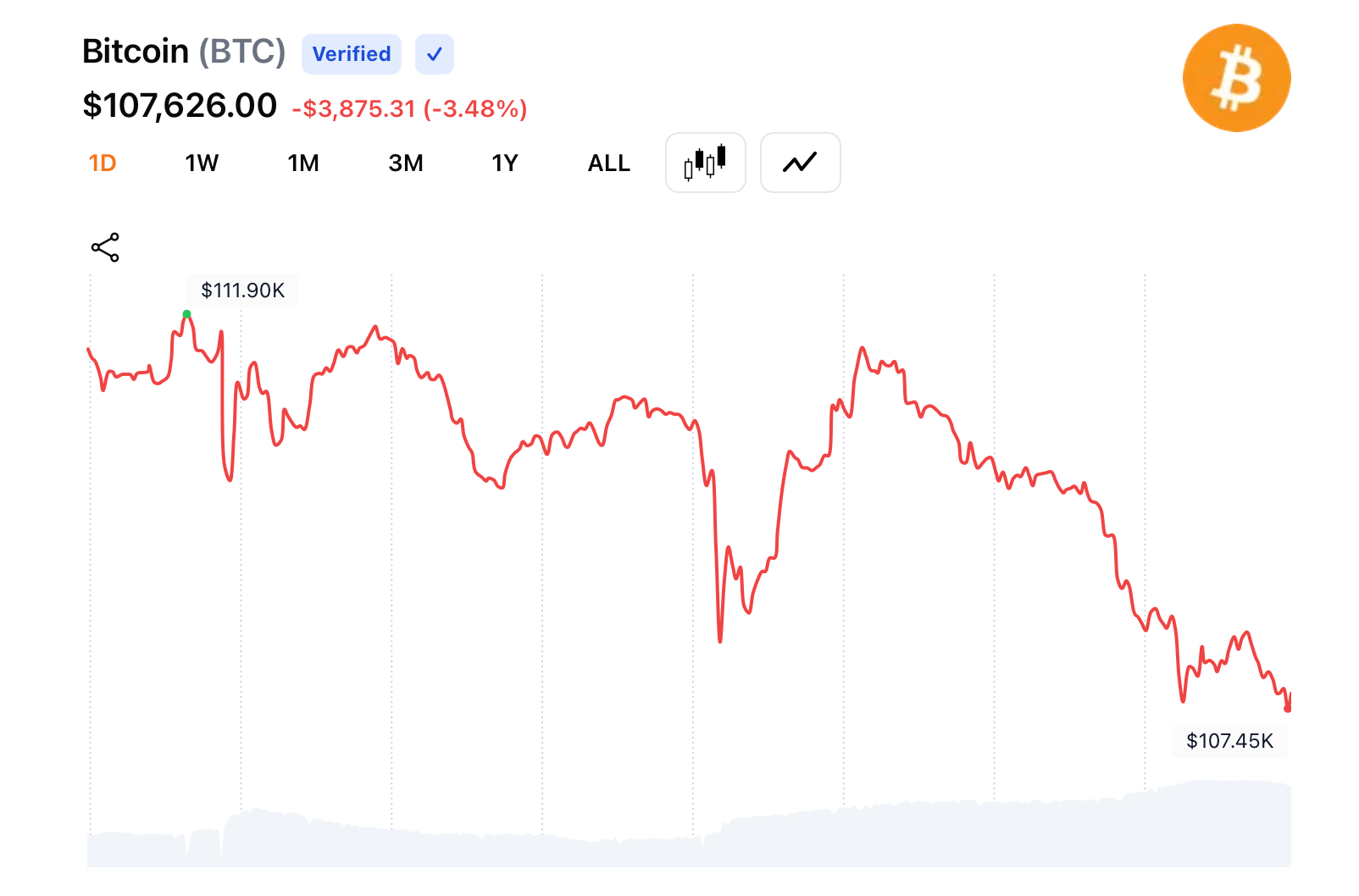 Bitcoin slipped beneath the $108,000 mark on Thursday, brushing an intraday low of $107,387 per coin. Sellers have been on caffeine apparently, cranking up the strain and dragging costs down by 3.4% in opposition to the U.S. greenback.