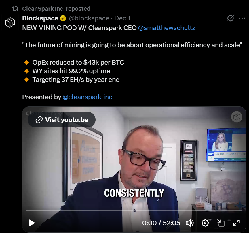 CEO Matt Schultz additionally reiterated the corporate’s $1.15 billion zero-coupon convertible observe providing, which supplied long-term financing at no curiosity value. The proceeds are supposed to strengthen CleanSpark, Inc.’s stability sheet, fund infrastructure growth, and assist a share repurchase program.